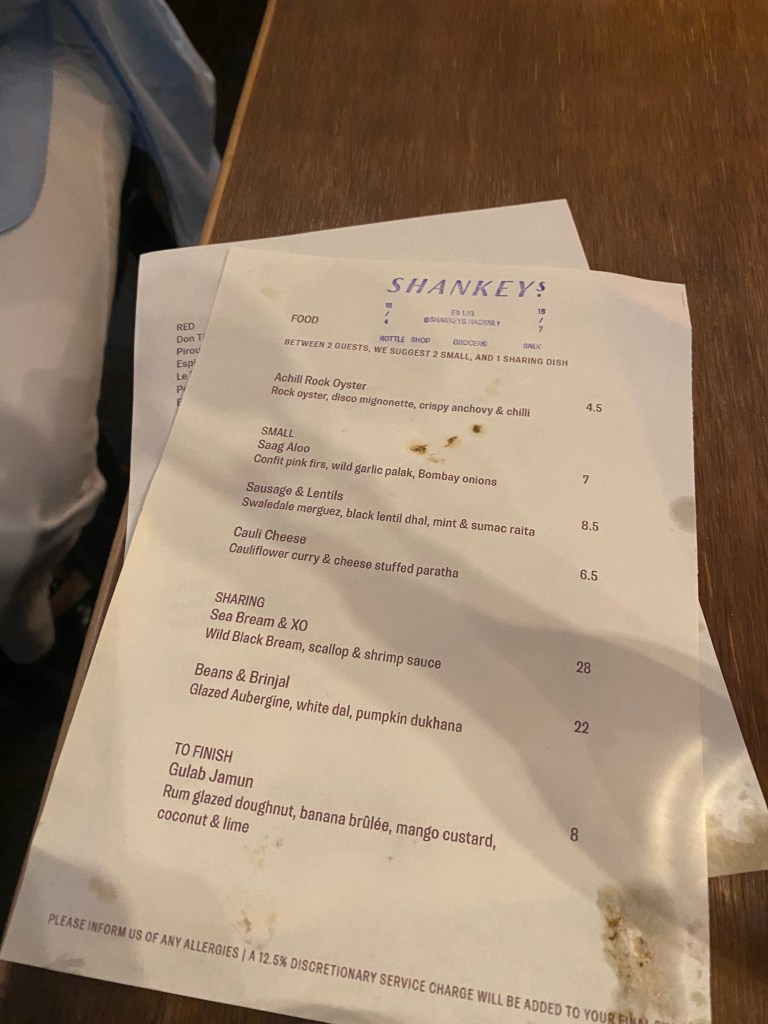 We organise a second date, a film at the Barbican – Wilding about the Nepp Estate. Kate books it and I try to find a suitable a restaurant. At short notice, this is a challenge – especially for a Friday night. I am helped by some people, who I don’t really know, to get a table at Shankey’s in Homerton. It’s and Irish/Indian fusion gaff in a former bookies. I’m grateful to them and humbled.